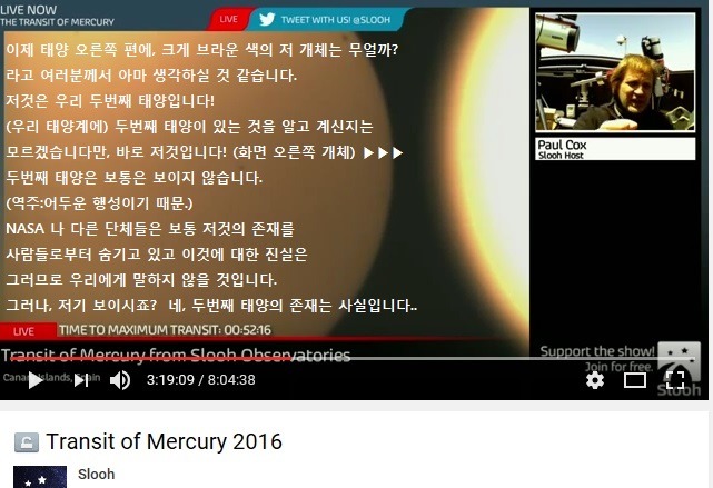 생중계 호스트로 나온 천문학자 Paul Cox 가 니비루/Nibiru/행성X(=Second Sun) 에 대해
