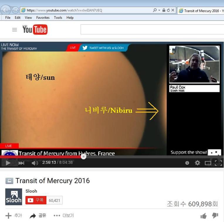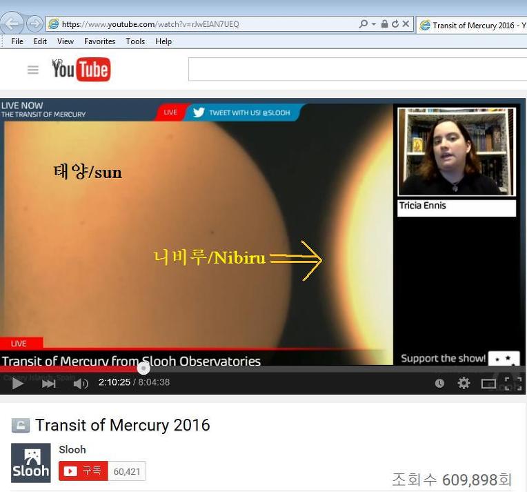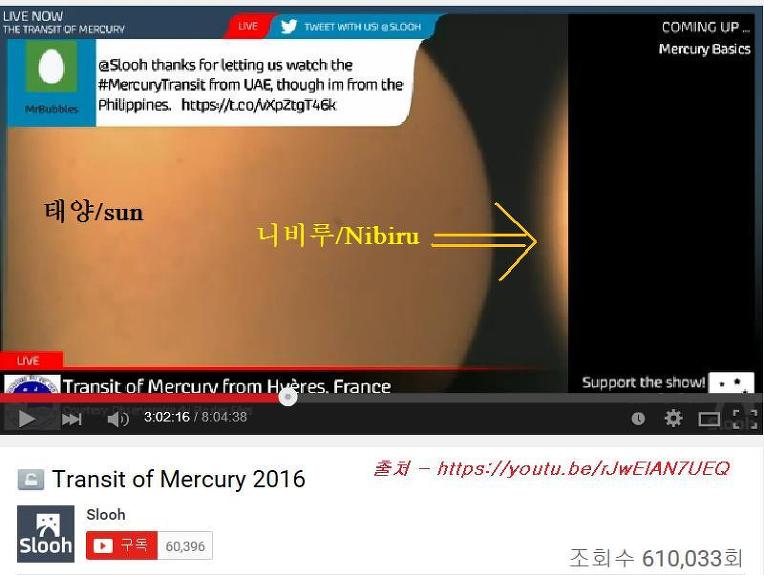 본 글의 제목인, <◈니비루/Nibiru ▶ 수성(Mercury)이 태양면을 통과한 2016 05 09일에