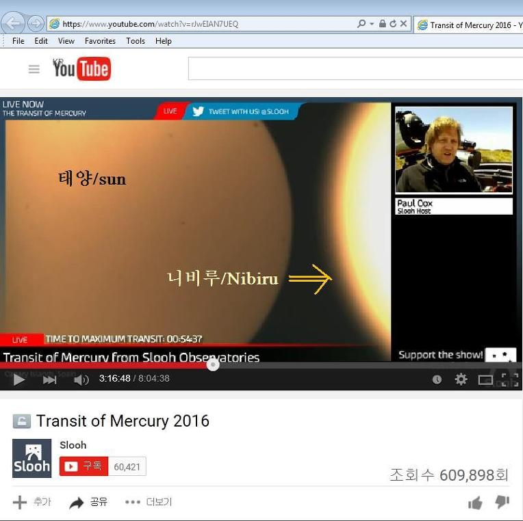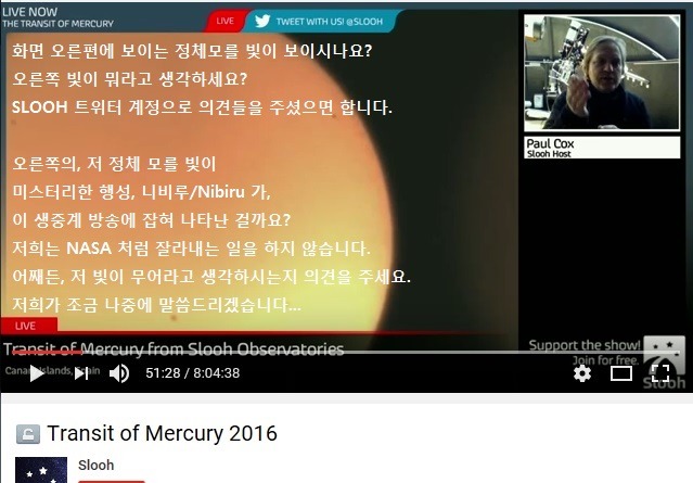 <Slooh생중계 영상에 나타난 Nibiru/니비루/행성X 와 천문학자 증언영상↓>