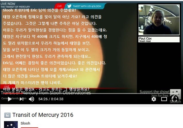위의, 2016년 05월 09일 수성의 태양면 통과 생중계 방송 녹화 영상은